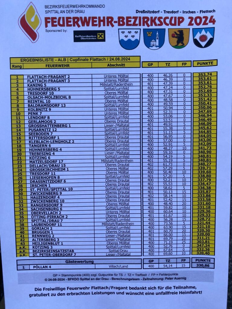 Beim letzten Abschnittsleistungsbewerb fürs Jahr 2024 konnte die Wettkampfgruppe Gerlamoos2 mit einer Treffzeit von 53:51 Sekunden fehlerfrei den 12. Platz erreichen!